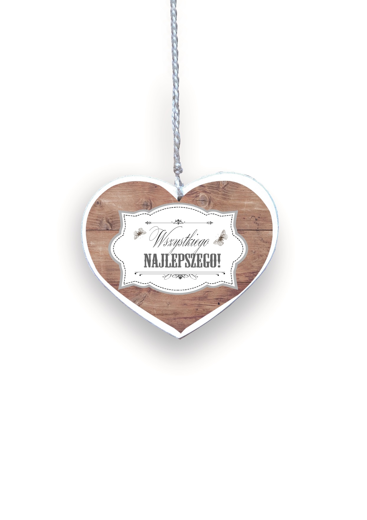 Drewniane serduszko 01 z tekstem "Wszystkiego najlepszego... "
