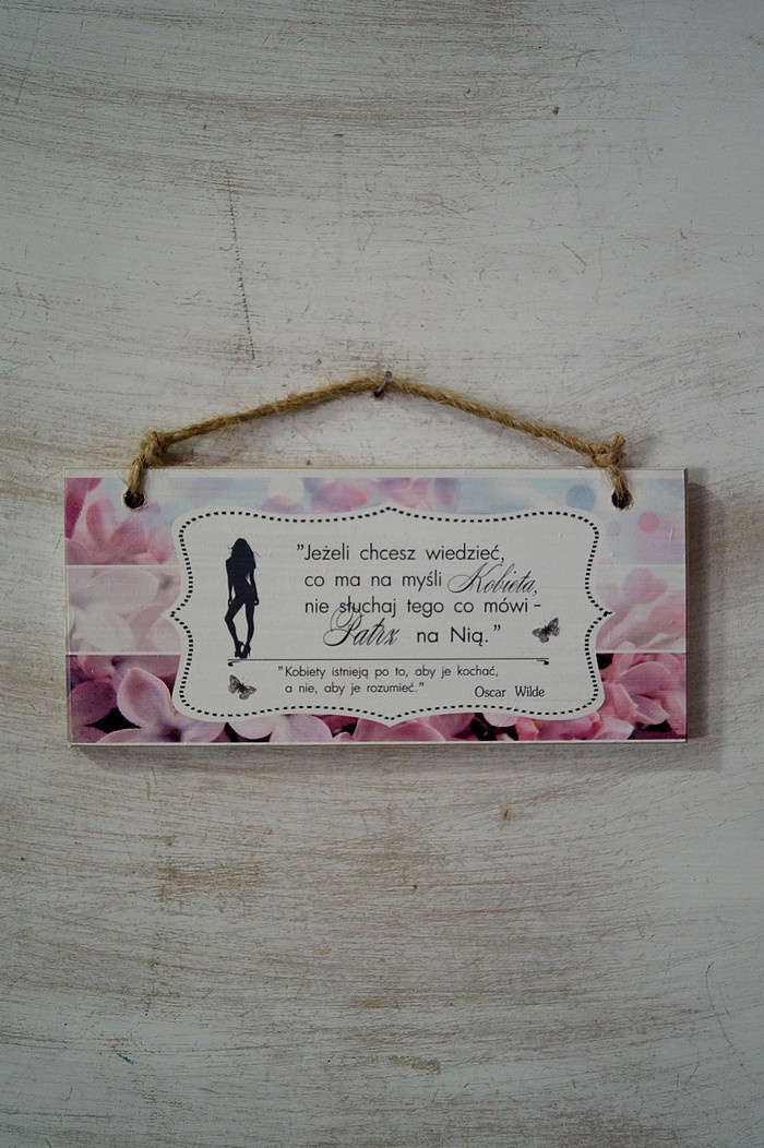 Drewniana tabliczka 02 z tekstem "Jeżeli chcesz wiedzieć co ma na myśli kobieta..."