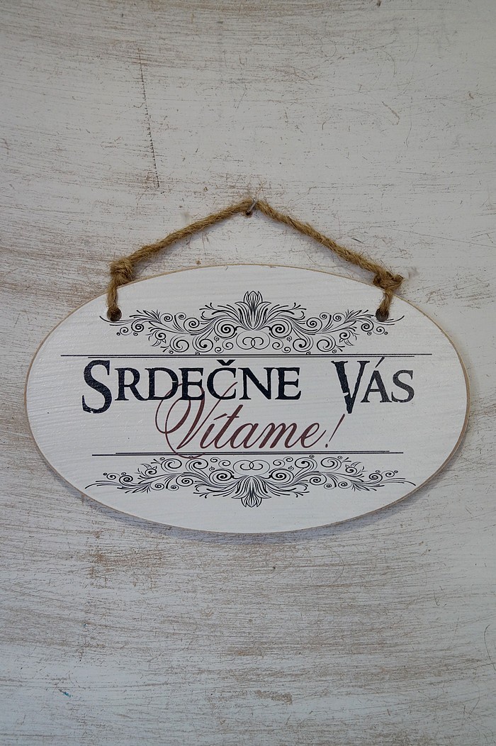 Drewniana elipsa 01 z tekstem "Srdecne vas vitame!..."