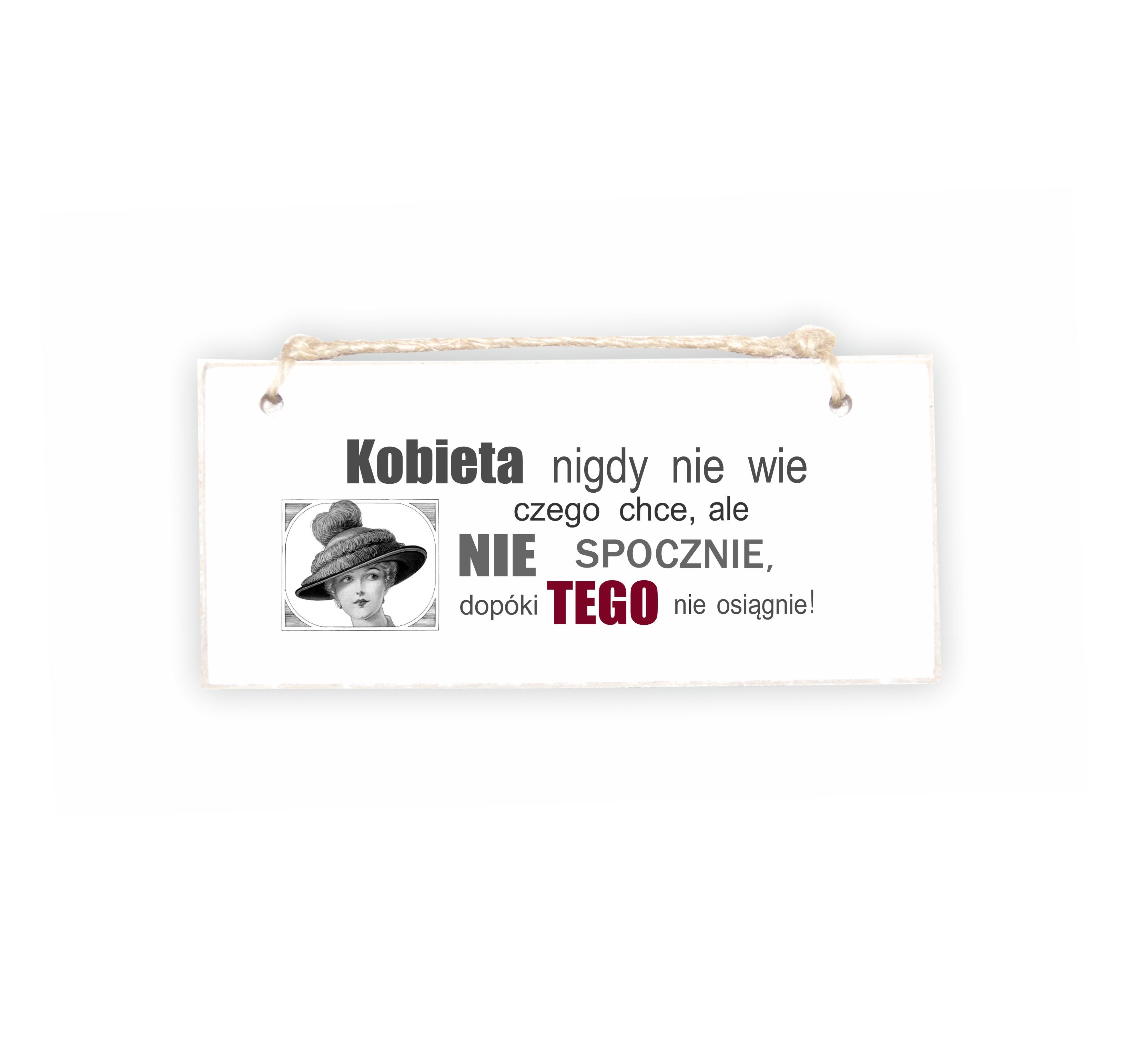Drewniana tabliczka 02 z tekstem "Kobieta nigdy nie wie..."