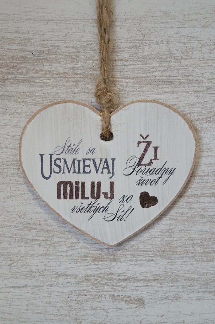 Drewniane serduszko 02 z tekstem "Stale sa usmievaj. Zi poriadny zivot..."