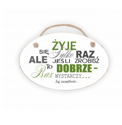 Drewniana tabliczka 08 z tekstem "Żyje się tylko raz..."