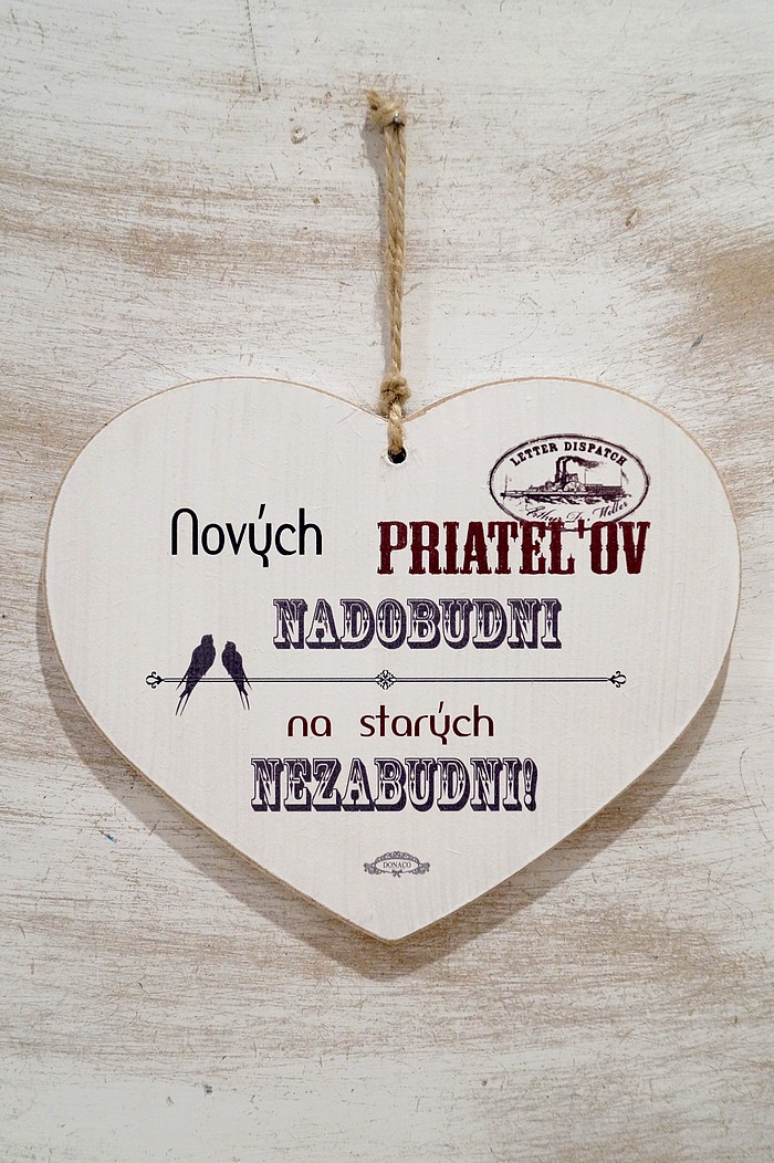 Drewniane serduszko 03 z tekstem "Novych Priatelov..."