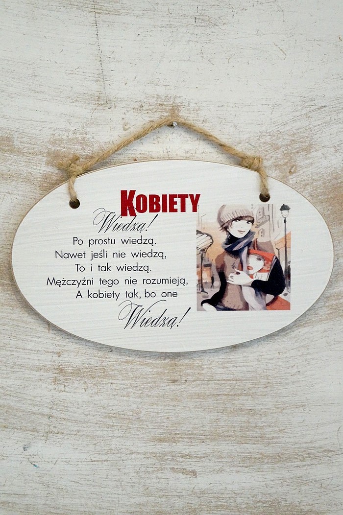 Drewniana elipsa 01 z tekstem "Kobiety wiedzą!..."