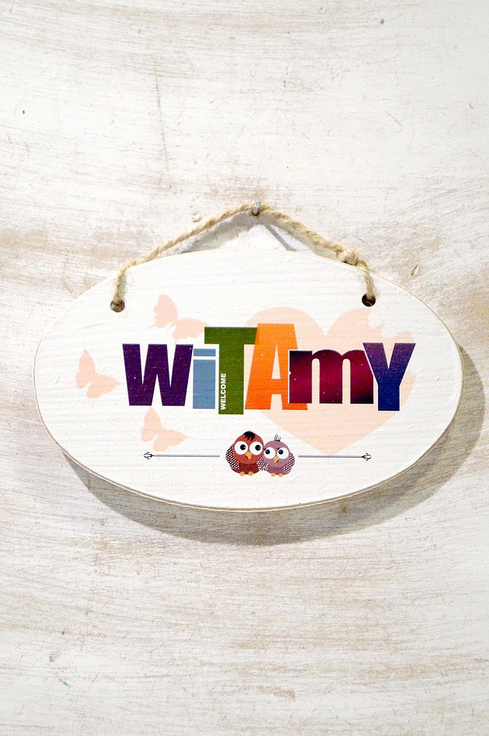 Drewniana elipsa 02 z tekstem "Witamy Welcome..."