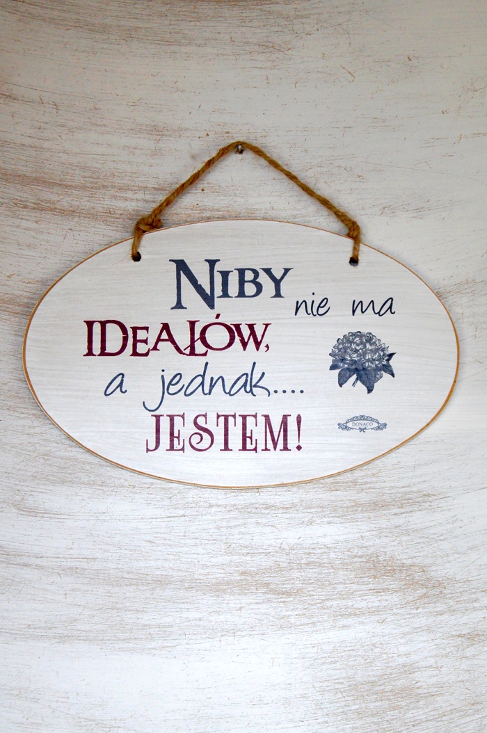 Drewniana elipsa 02 z tekstem "Niby nie ma ideałów, a jednak jestem ..."