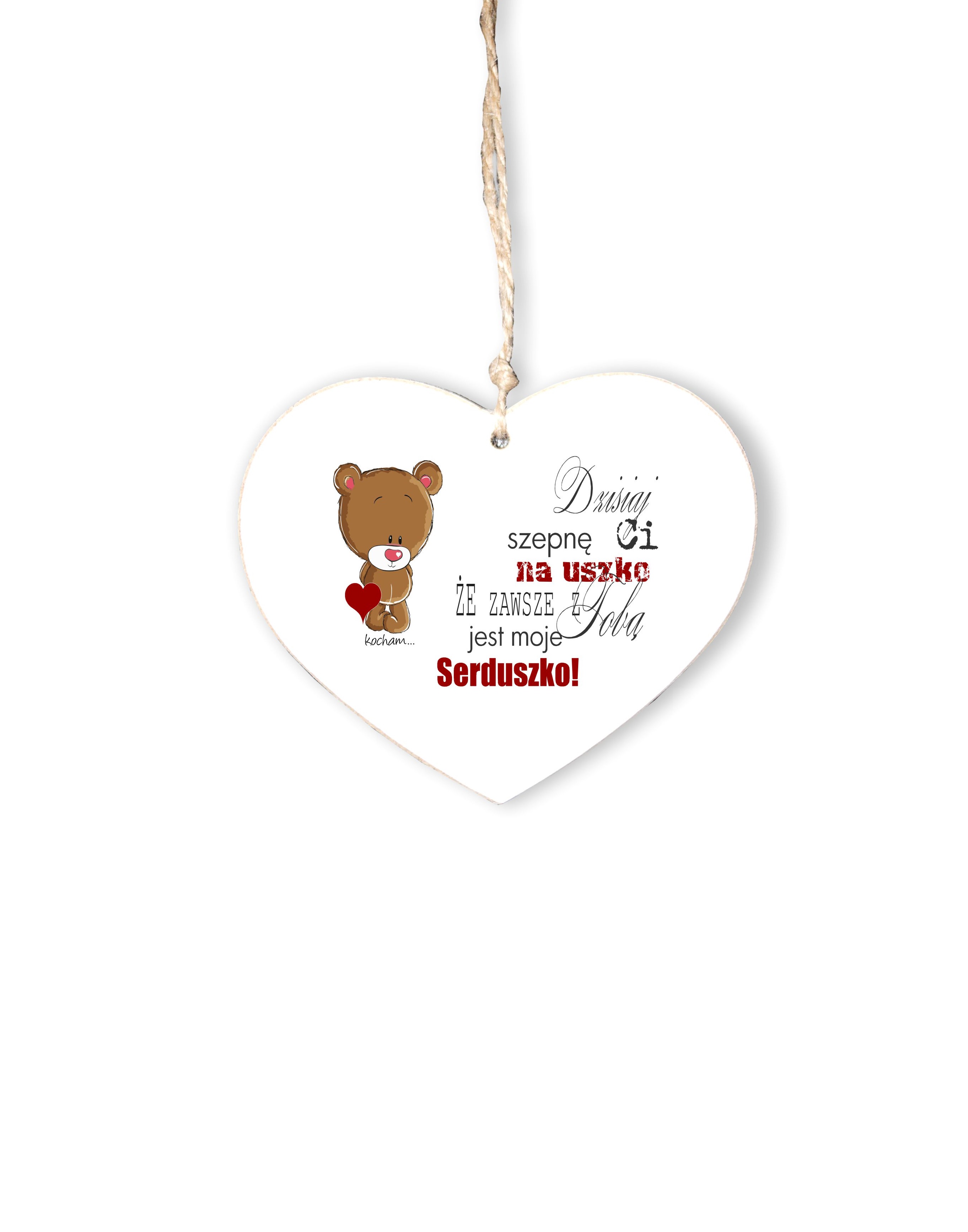Drewniane serduszko 02 z napisem "Dzisiaj szepnę Ci na uszko..."
