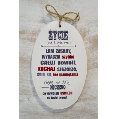 Drewniana tabliczka 08 z tekstem "Życie jest krótkie, więc..."