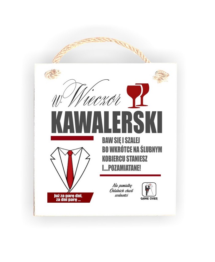 Drewniana tabliczka 05 z tekstem "WIECZÓR KAWALERSKI"