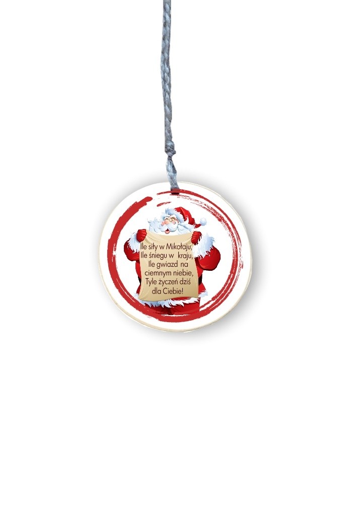 Drewniany magnes koło 01 z tekstem "Ile sił w Mikołaju..."