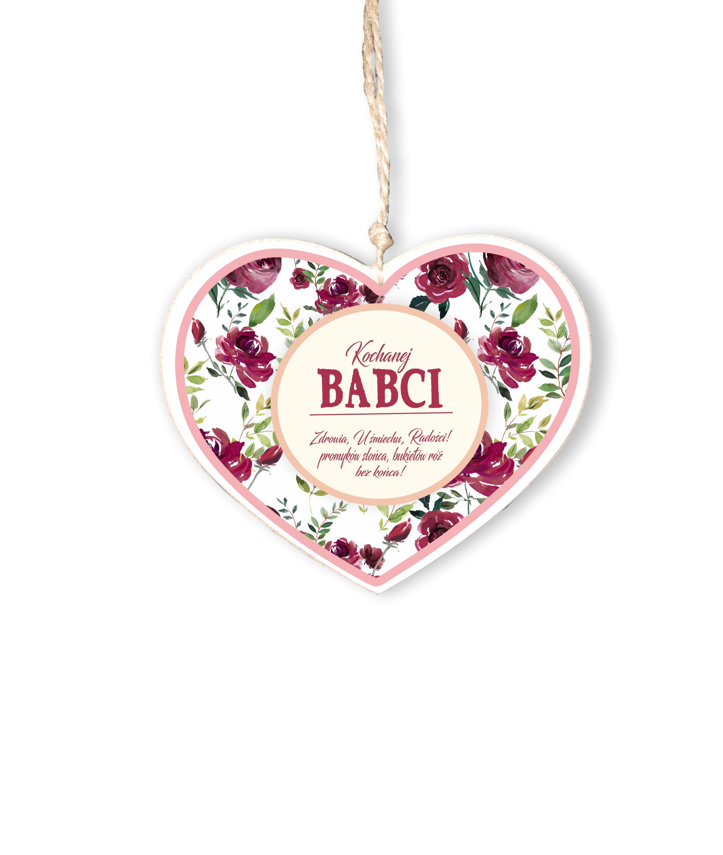 Drewniane serduszko 03 z tekstem "Kochanej Babci..."