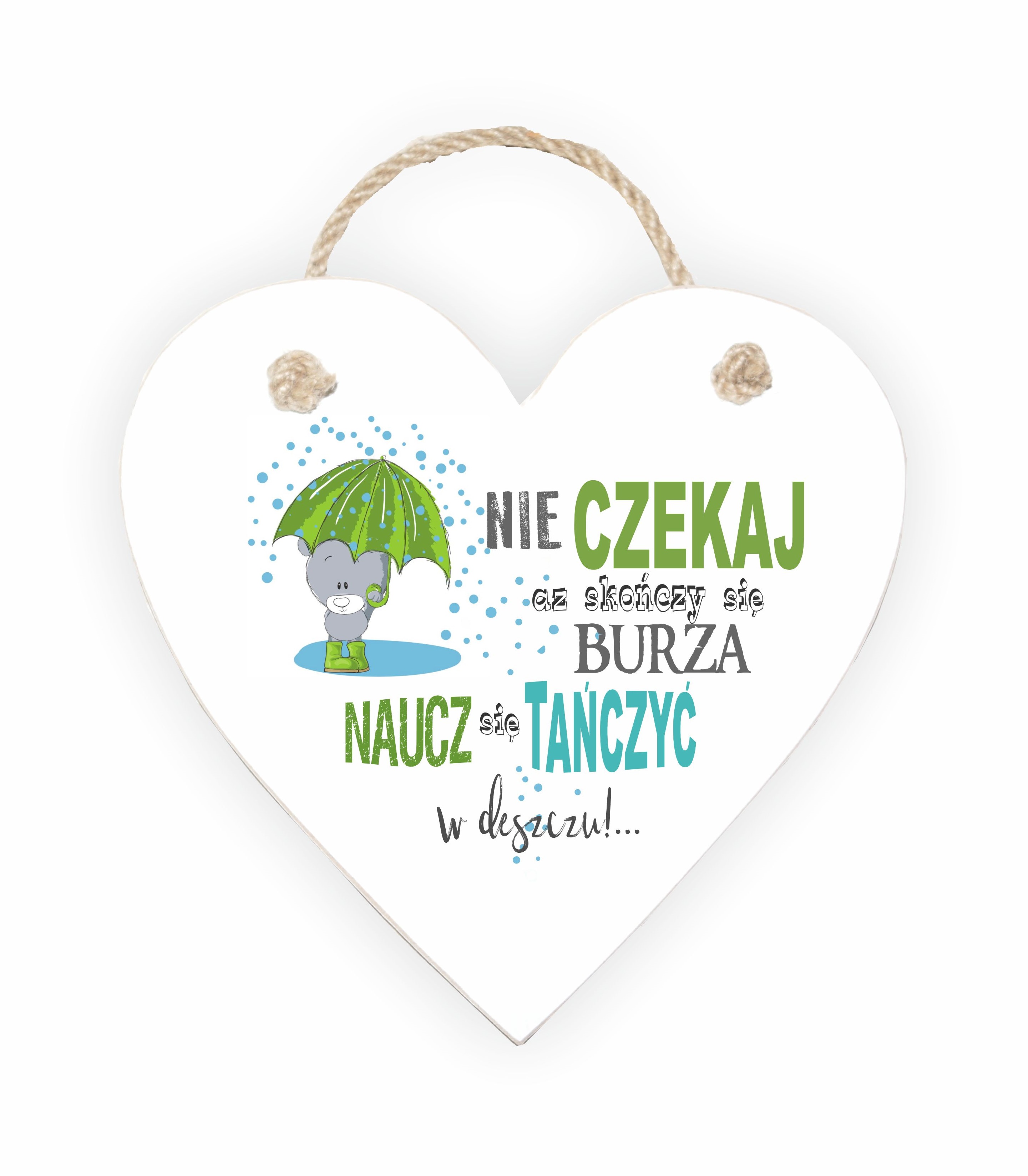 Drewniane serduszko 05 z tekstem "Nie czekaj aż skończy się burza..."