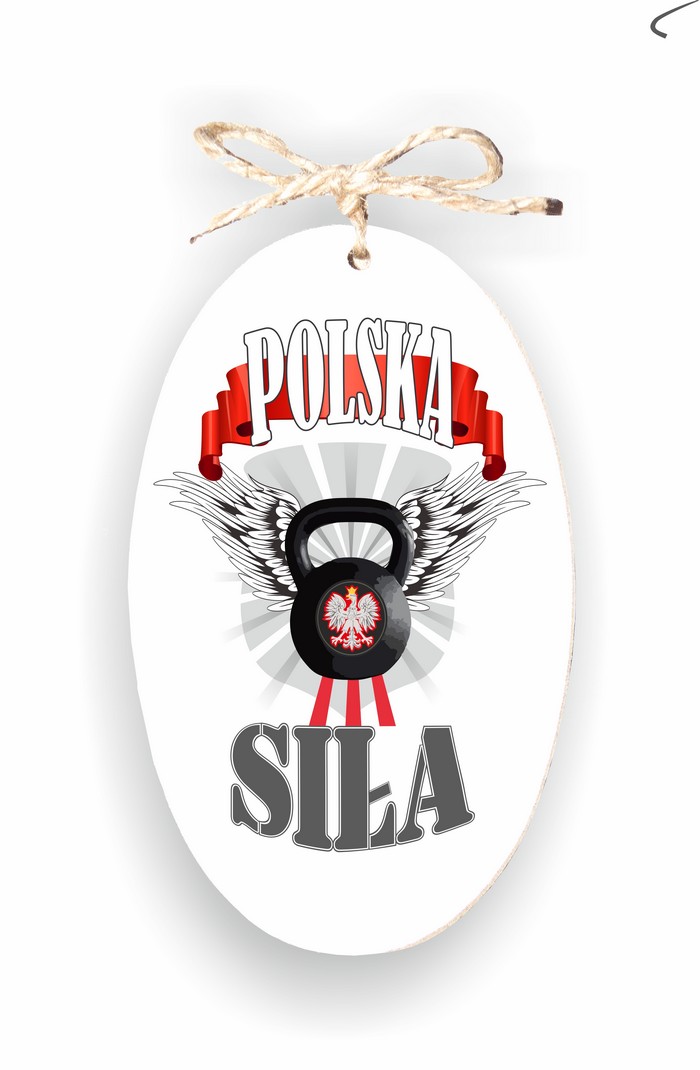 Drewniana elipsa 01 z tekstem "Polska siła"