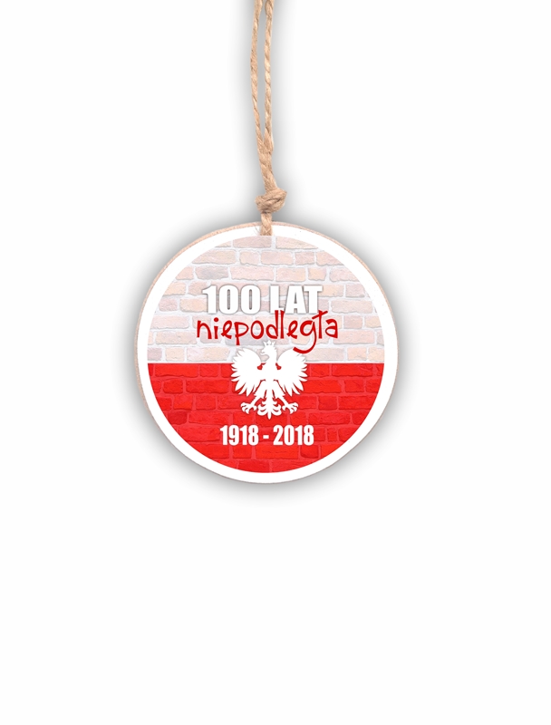 Drewniane koło 01 z tekstem "100 lat niepodległa"
