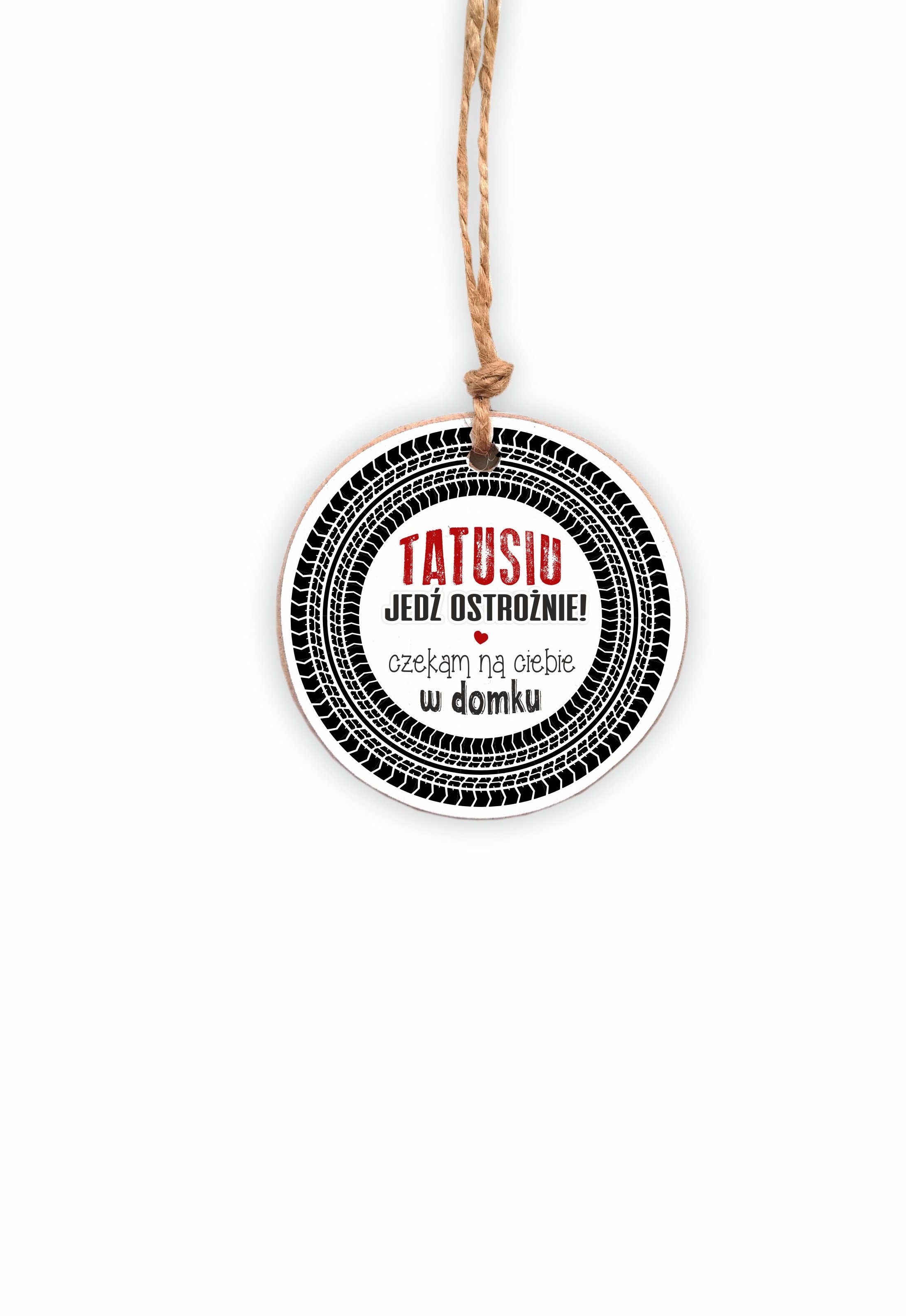 Drewniane koło 01 z tekstem "Tatusiu, jedź ostrożnie..."