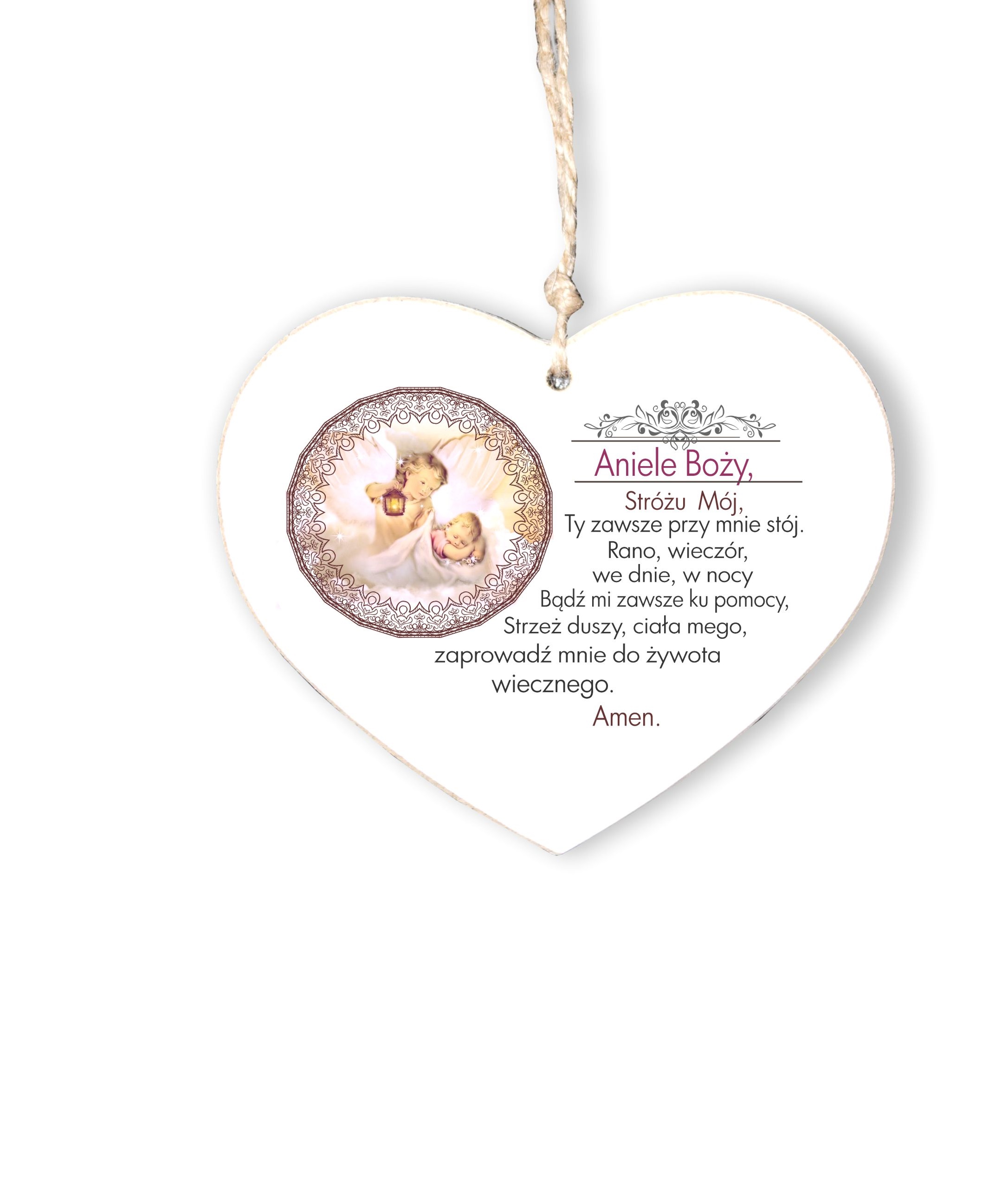 Drewniane serduszko 04 z tekstem "Aniele Boży..."