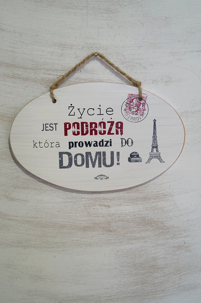 Drewniana elipsa 02 z tekstem "Życie jest podróżą, która prowadzi do domu!"