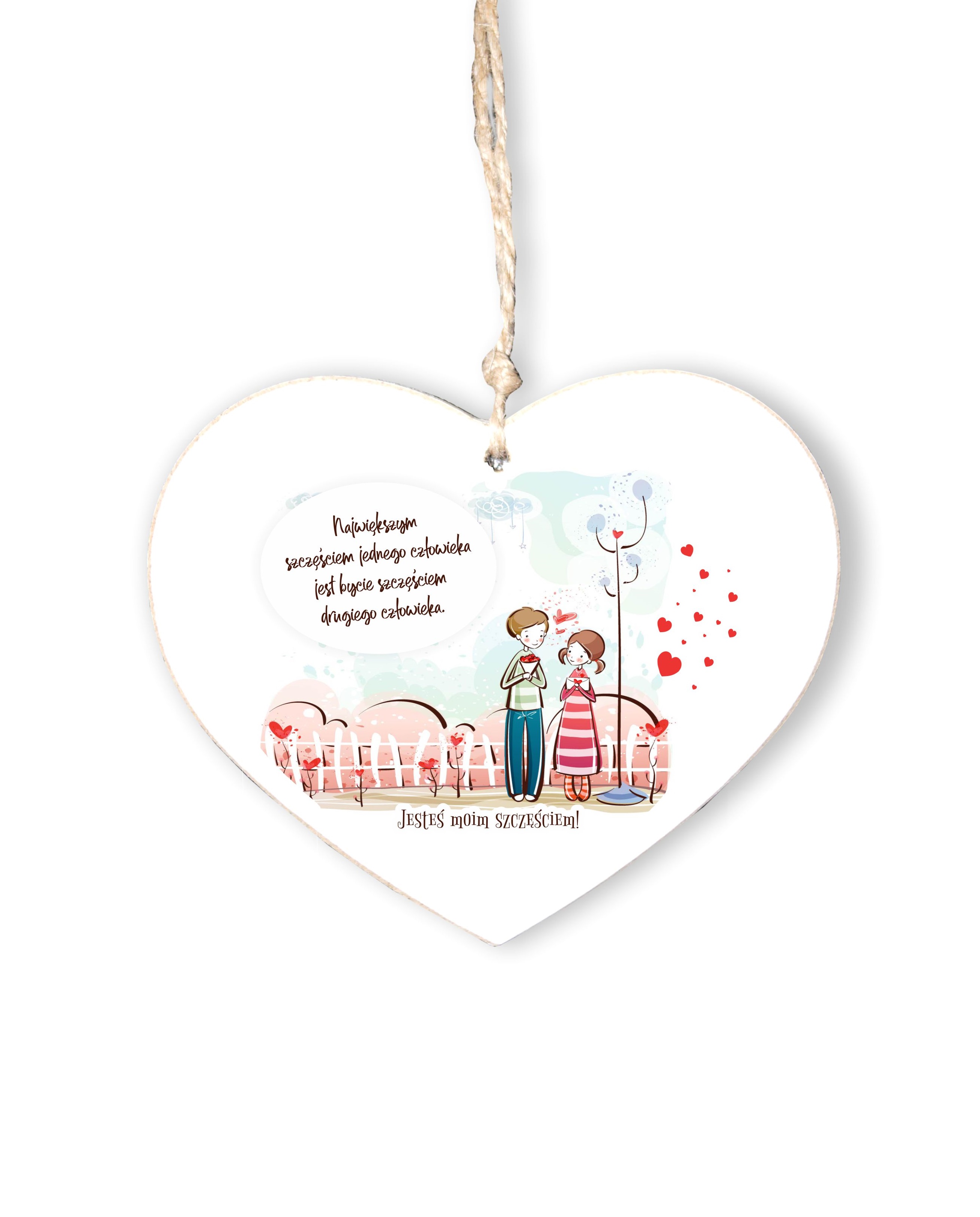Drewniane serduszko 03 z tekstem "Największym szczęściem..."