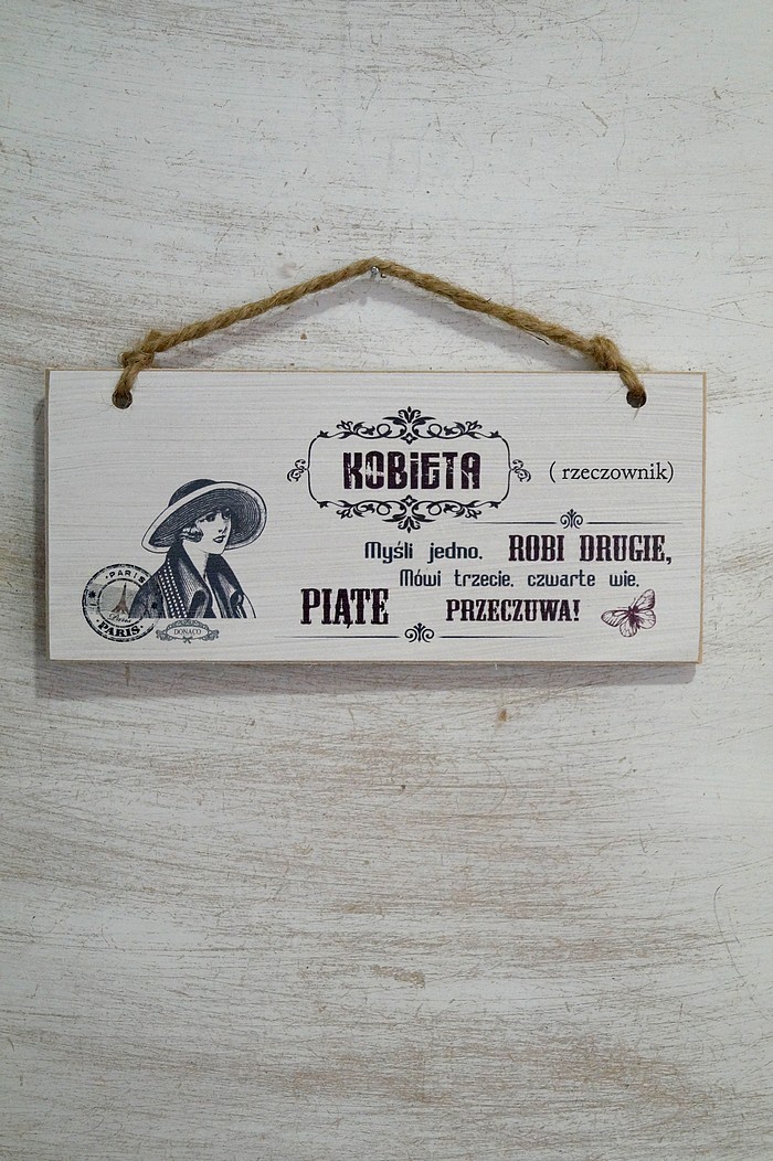Drewniana tabliczka 02 z tekstem "Kobieta (rzeczownik).."