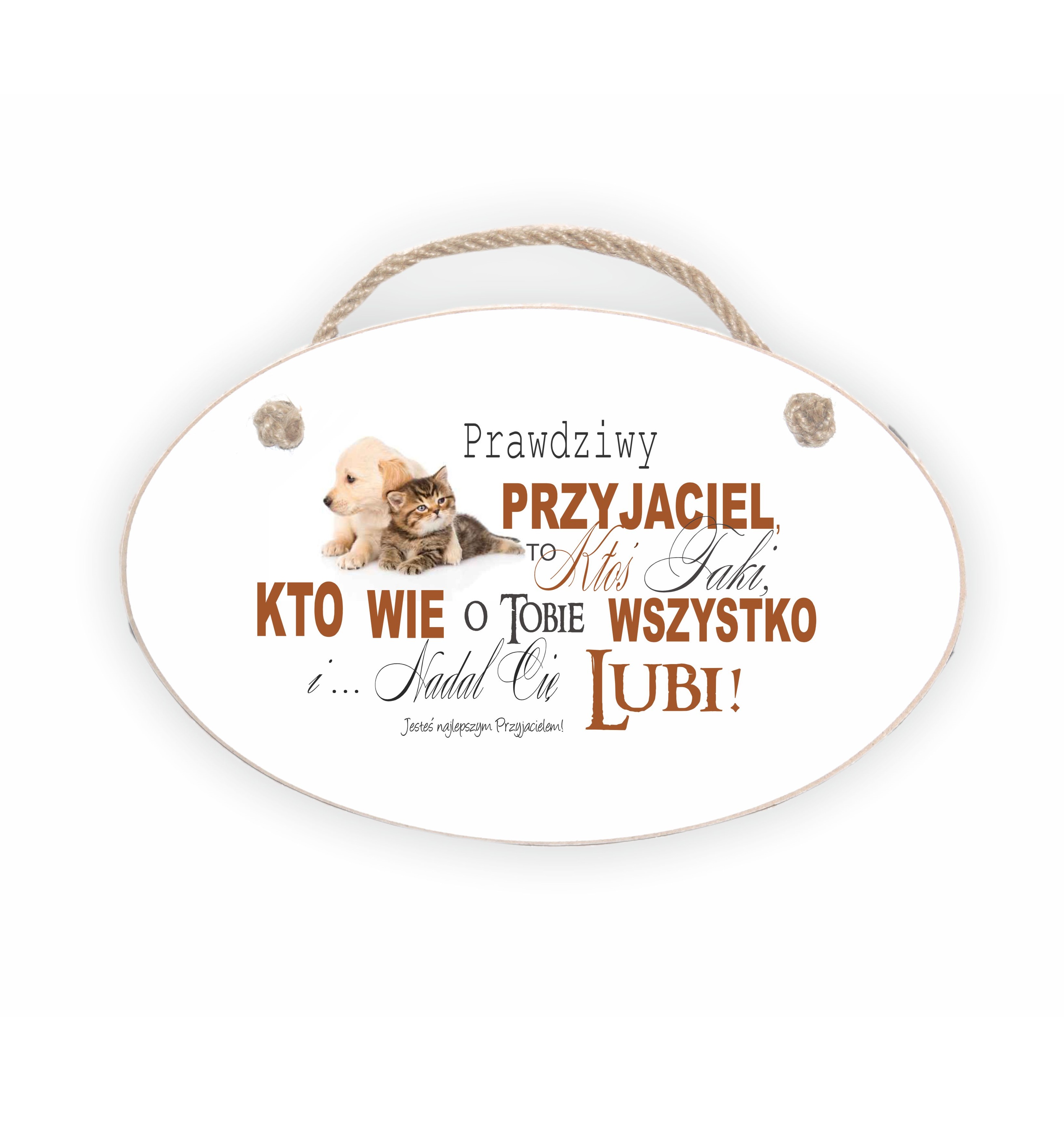 Drewniana elipsa 03 z tekstem "Prawdziwy przyjaciel..."